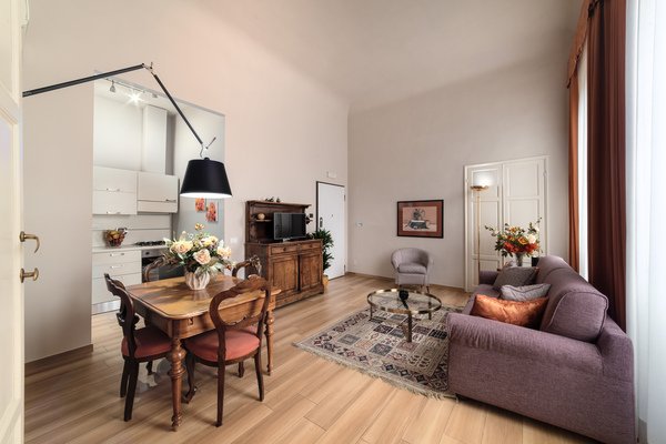 Overlooking Ricasoli pedestrian street with a view of the Brunelleschi’s dome, the Classic apartment is the perfect choice for those who require a spacious and bright apartment at the Best price!