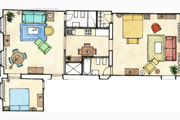It can accommodate up to 7 people and for us it is perfect for large families and groups of friends or simply two couples who want to share the same apartment while still maintaining their privacy.